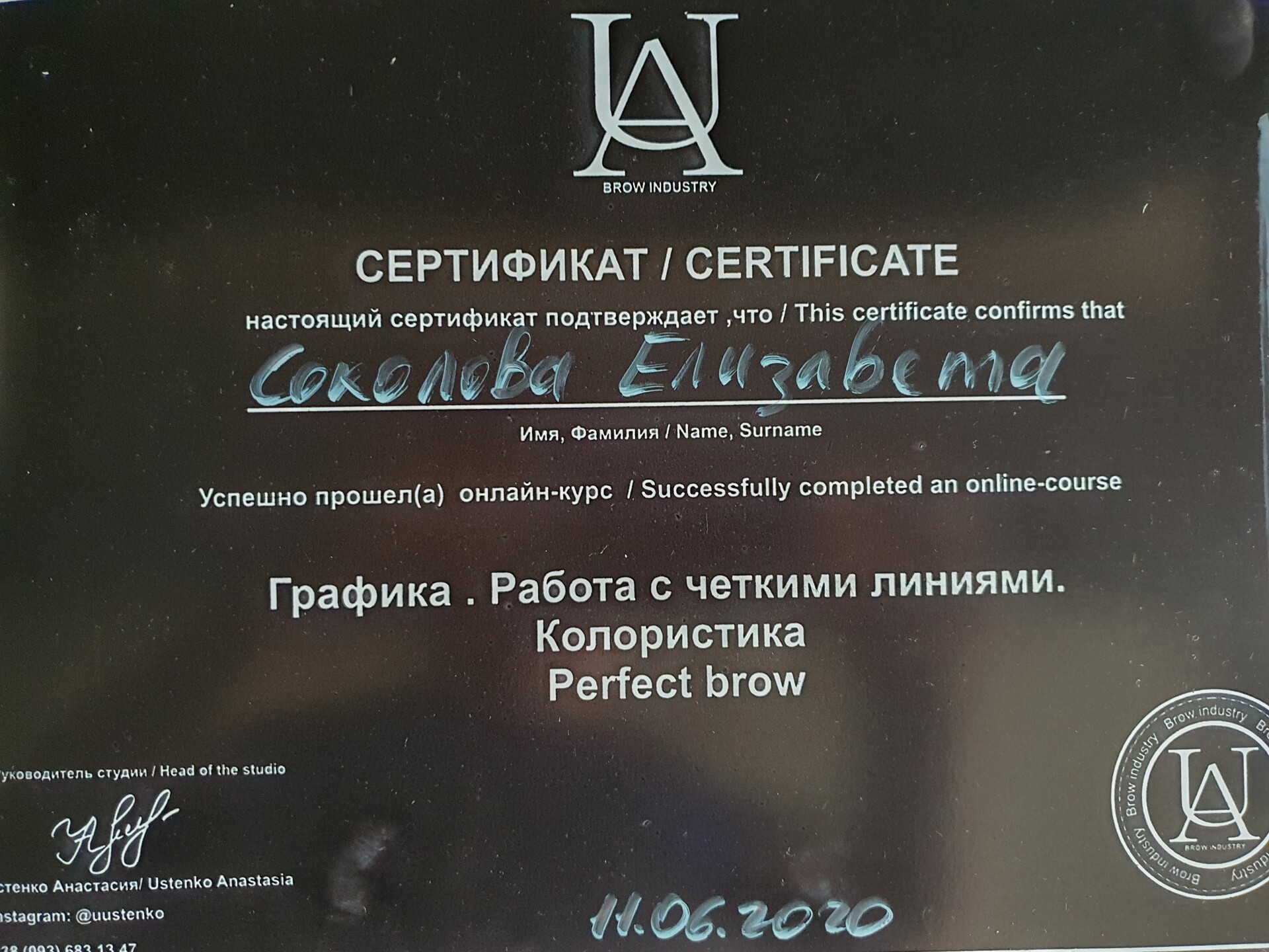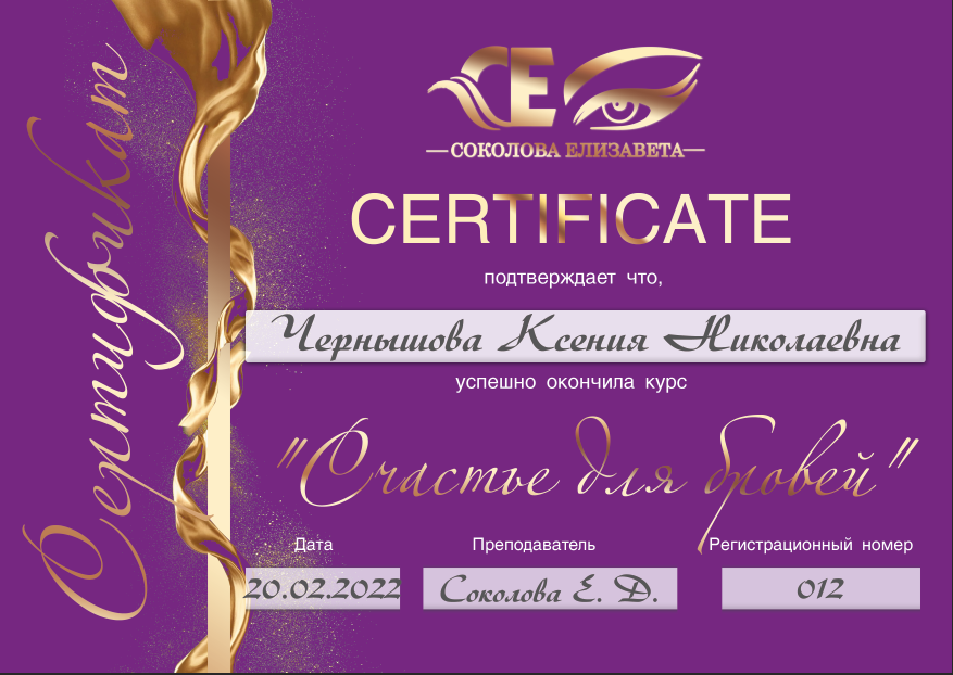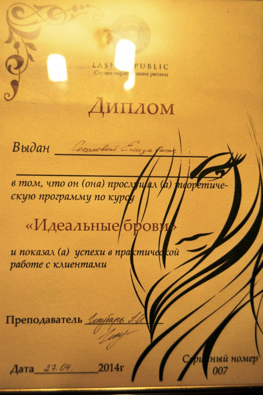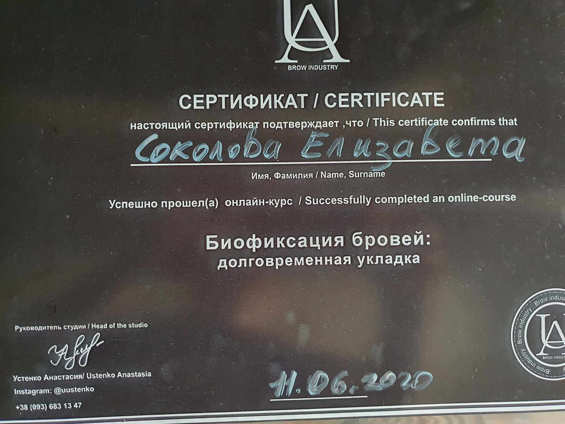 ✅ Диплом о дополнительном образовании по курсу Бровист и Укладки