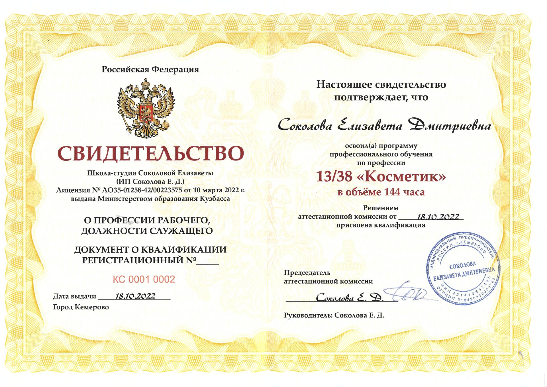 * На любом курсе помимо выданных документов об обучении можно также получить Диплом о дополнительном образовании и Свидетельство о присвоении профессии Косметик. Более подробно можно прочитать здесь.