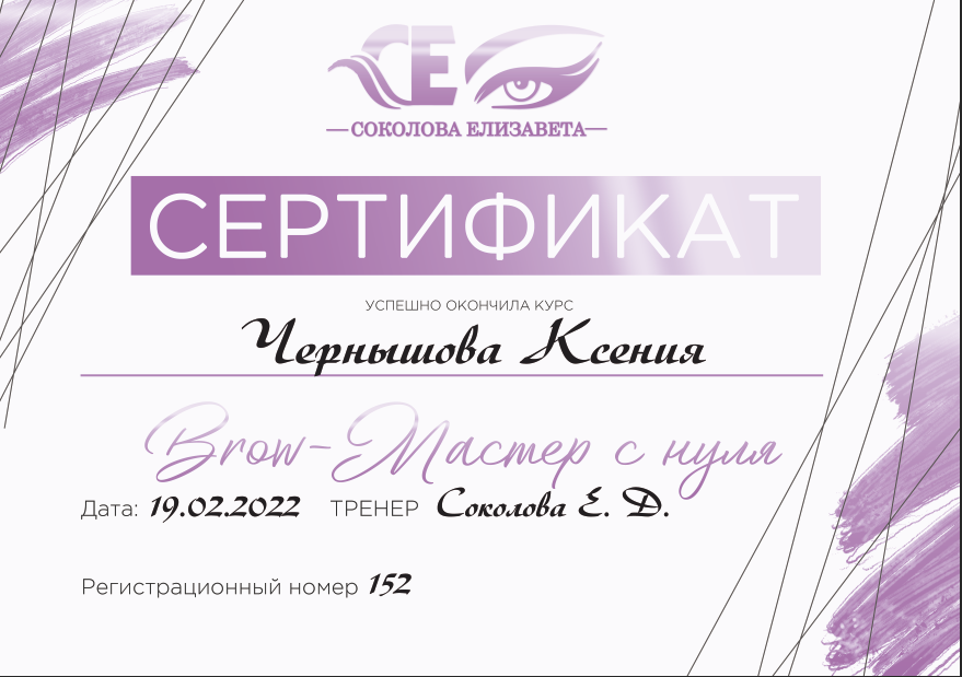 ✅ Диплом о дополнительном образовании по курсу Бровист и Укладки